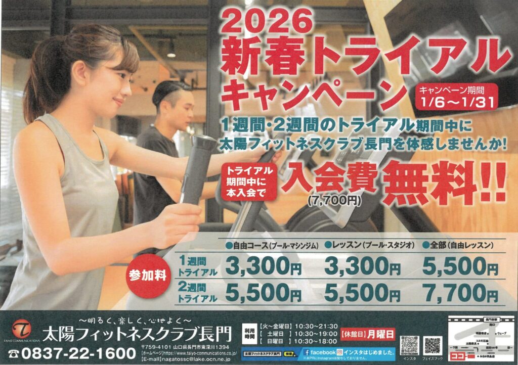 太陽フィットネスクラブ長門を体感しませんか!?